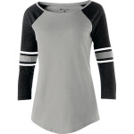 - Sleeves feature a 50% cotton/50% polyester jersey with silver metallic sparkle print