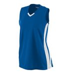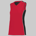 100% polyester propelit micromesh wicking knit * Wicks Moisture * Ladies' fit * Tagless label * Double layer V-neck collar * Contrast color inserts * Racerback styling * Designed to be NFHS compliant