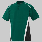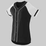 100% polyester propelit micromesh wicking knit body * 92% polyester/8% spandex wicking pinhole mesh side panels * Wicks moisture * Ladies' fit * Tagless label * Faux full button jersey * Buttons spaced for easy embellishment * Contrast color pinhole mesh sleeve and side inserts for breathability * Contrast color sleeves and piping * Raglan sleeves * Fishtail bottom